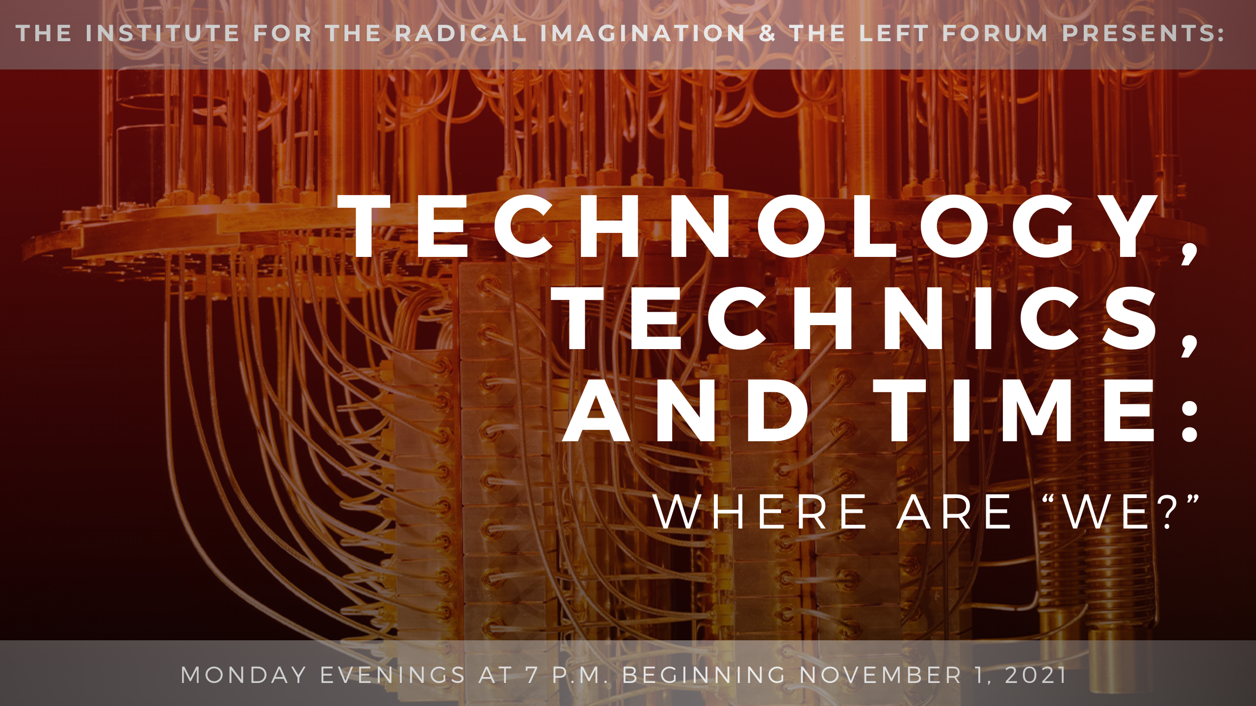 This 10-Week Seminar organized by the Institute for the Radical Imagination and the Left Forum intends to explore our contemporary liminal and psychic position(s) in relation to the onslaught of technological overload and its determinate domination over our everyday lives. Through selected readings from Heidegger’s Question Concerning Technology and the Age of the World Picture to Benjamin’s seminal and often optimistic take on technical reproduction, we will frame some modern thinkers’ (Stiegler and Kittler) response to the problematic of the metaphysical and epochal thinking of Heidegger and the historical materialist approach of Benjamin.
